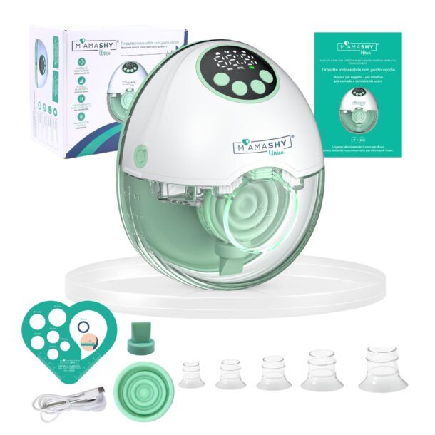 Una delle caratteristiche più innovative del MAMASHY Unica è la guida vocale in italiano, che ti accompagna durante l'utilizzo del tiralatte, rendendo l'intero processo intuitivo e semplice da seguire. Inoltre, il prodotto è completamente indossabile sotto il reggiseno, eliminando qualsiasi ingombro e garantendo una discrezione totale.