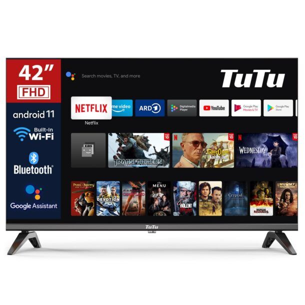 La TuTu Smart TV da 42 pollici rappresenta un'opzione eccellente per chi cerca una combinazione di qualità visiva e funzionalità avanzate. Con il suo schermo LED da 42 pollici, offre una risoluzione Full HD a 1080p che garantisce immagini nitide e dettagliate, perfette per godere di film, serie TV e giochi con una chiarezza sorprendente.