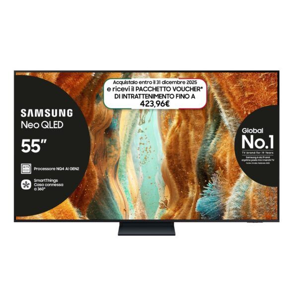 Il Neo QLED 55'' di Samsung punta dichiaratamente alla fascia alta per qualità d’immagine e funzioni intelligenti. Il cuore del sistema è il processore NQ4 AI Gen2, che sfrutta l’AI Upscaling Pro in 4K per riscalare i contenuti a bassa risoluzione, preservando dettagli fini e texture. Se guardi spesso contenuti in HD o anche inferiori, noterai immediatamente un aumento di nitidezza, con contorni più puliti e meno artefatti, soprattutto su volti e scritte in movimento.