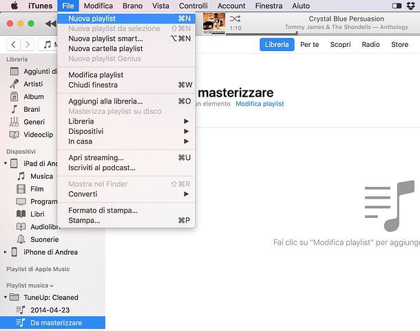 Se stai adoperando iTunes, avvia il programma selezionando sempre la relativa icona dal Launchpad o dalla cartella Applicazioni di macOS, dunque seleziona l’opzione Musica dal menu a tendina in alto e procedi analogamente a come spiegato poc’anzi per Musica.