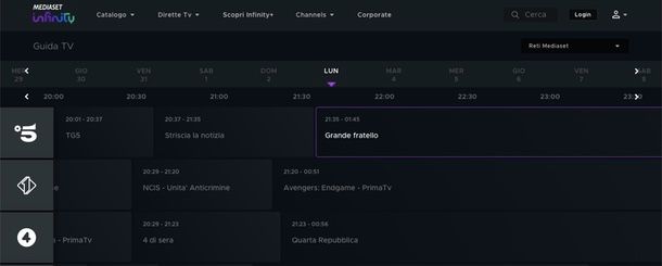 Ti faccio presente che la piattaforma Mediaset Infinity è molto più di una guida TV: puoi avvalertene per guardare i programmi in diretta e quelli già andati in onda inerenti alle reti dello stesso gruppo (in questi caso, però, è richiesta la creazione di un account Mediaset gratuito). Per saperne di più ti invito a leggere i tutorial che ti ho appena linkato.