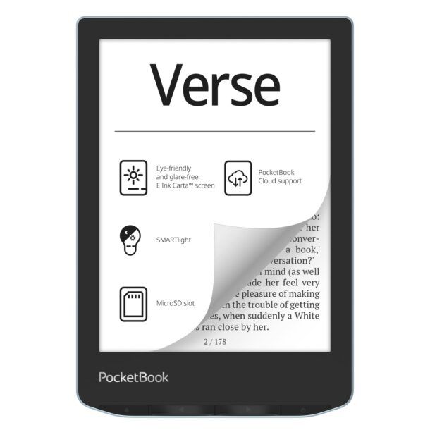 Con 8 GB di memoria interna, il PocketBook VERSE può contenere migliaia di libri. Se hai bisogno di ancora più spazio, puoi aggiungere una scheda di memoria fino a 128 GB. Un'altra caratteristica notevole è la durata della batteria: con una sola carica completa, puoi goderti un mese intero di lettura, dimostrando l'efficienza energetica del dispositivo.