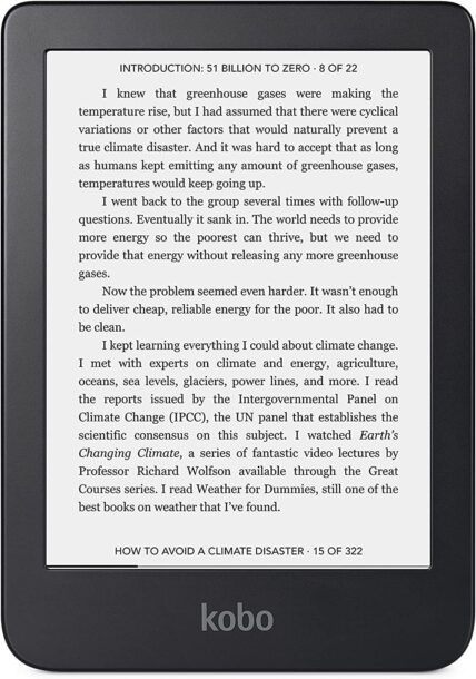 - Tipologia — i display dei Kobo sono tutti di tipo E-Ink, una tecnologia che consente una lettura confortevole anche alla luce diretta del sole, con una resa dei testi simile alla carta stampata. Alcuni modelli, come il Kobo Clara 2E e il Kobo Libra 2, utilizzano la tecnologia E-Ink Carta 1200, che migliora il contrasto e i tempi di risposta rispetto ai modelli precedenti. Alcuni modelli supportano anche la tecnologia E-Ink Regal, che riduce l’effetto ghosting, migliorando il cambio pagina.