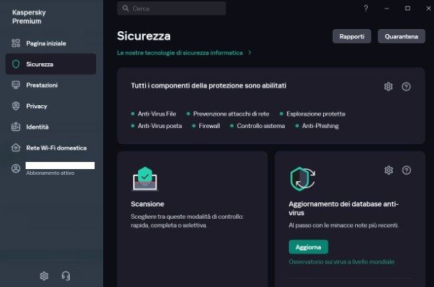 Adesso che hai installato Kaspersky Premium, vediamo insieme le sue caratteristiche. Come ti ho già anticipato, si tratta di una soluzione completa per la protezione digitale e le sue funzionalità sono studiate per garantire una protezione a 360 gradi, senza compromessi, e per offrire un’esperienza d’uso fluida e intuitiva, indipendentemente dal dispositivo utilizzato.