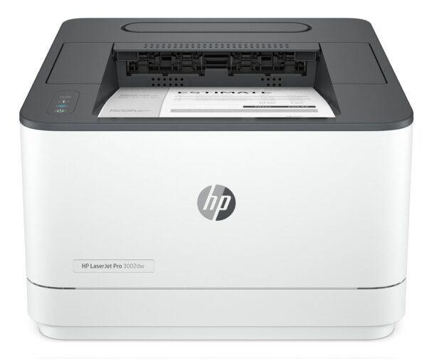 LaserJet Pro 3002dw è una stampante laser monocromatica A4 progettata chiaramente per chi ha bisogno di volumi di stampa regolari e costanti, mantenendo compattezza e semplicità d’uso. Il design in bianco e grigio, con ingombro di 38,9 x 36,7 x 21,6 cm e peso di 7,5 kg, la rende adatta anche a spazi di lavoro contenuti, senza sacrificare capacità di alimentazione e robustezza meccanica.