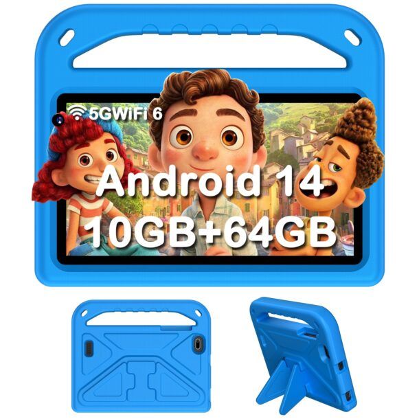 In termini di design, il colore blu vivace del tablet e della custodia lo rende attraente per i bambini, mentre il peso leggero di soli 300 grammi lo rende facile da maneggiare anche per le mani più piccole. La batteria da 4500 mAh garantisce fino a 6 ore di autonomia, permettendo un uso prolungato senza necessità di ricariche frequenti.