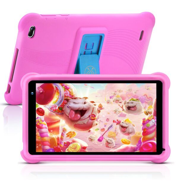 La custodia protettiva anti-caduta è un altro punto di forza significativo. Realizzata in silicone morbido e antiurto, questa custodia aumenta la durata e la sicurezza del dispositivo. Ogni lato e bordo della custodia sono leggermente rialzati rispetto allo schermo, offrendo una protezione aggiuntiva contro graffi e danni accidentali. Inoltre, la custodia include un supporto regolabile che consente ai bambini di studiare e guardare video in modo comodo e sicuro.