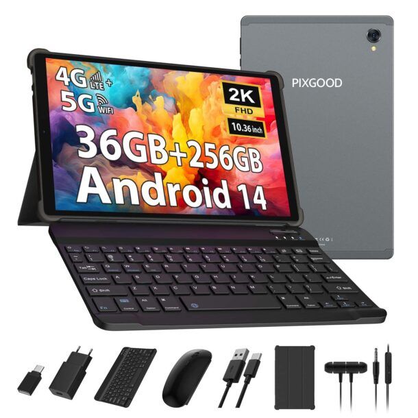PIXGOOD 2K Tablet 10,4 Pollici, 4G LTE+5G WiFi, 36GB RAM+256GB ROM (2T...