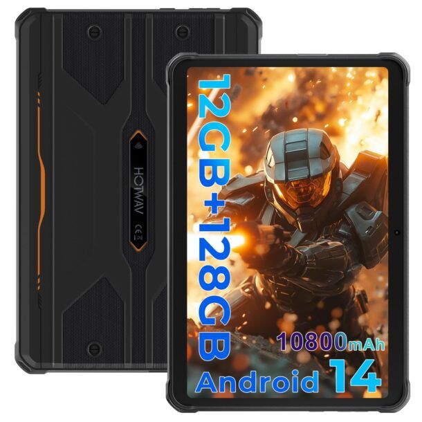 L’HOTWAV R8 è un tablet robusto da 10,1 pollici pensato per chi lavora o si muove in ambienti impegnativi e ha bisogno di un dispositivo che privilegi resistenza, autonomia e connettività rispetto alla pura estetica. La scocca rinforzata, con finitura arancione ben visibile, integra protezioni su tutti gli spigoli e una struttura irrobustita che, secondo il produttore, soddisfa gli standard IP68/IP69K e MIL-STD-810H. Questo significa impermeabilità, protezione contro polvere e urti, utilizzo in condizioni climatiche estreme e una tolleranza a immersione, cadute e vibrazioni che vanno ben oltre i dispositivi convenzionali.