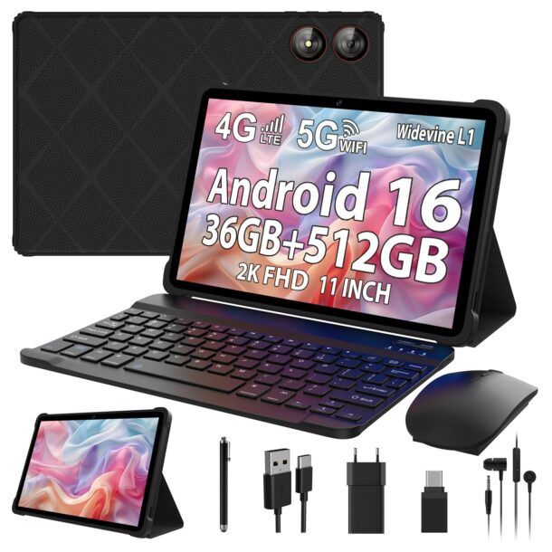 Il SADSYMB 2026 da 11 pollici è un dispositivo pensato per chi cerca un compagno di lavoro e intrattenimento completo, con una dotazione hardware sorprendentemente ricca: schermo da 11" 2000 x 1200, Android 16, processore octa‑core MediaTek T7200, 36 GB di RAM e 512 GB di archiviazione espandibile fino a 1 TB tramite microSD. Fin dal primo utilizzo percepisci che è stato progettato per gestire senza sforzo attività complesse e carichi multitasking intensi.