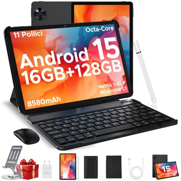 Il DOOGEE U11, con il suo schermo da 11 pollici, rappresenta un'opzione interessante per chi cerca un dispositivo versatile e potente. Dotato di un sistema operativo Android 15, questo tablet si distingue per la sua capacità di trasformarsi in un piccolo computer portatile grazie alla tastiera Bluetooth inclusa, una penna stilo, un mouse e una custodia protettiva. Questa caratteristica lo rende ideale per chi ha bisogno di lavorare o studiare in mobilità, offrendo una soluzione completa e integrata.