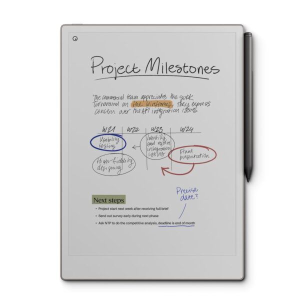 Dal punto di vista organizzativo, il Paper Pro si comporta come un assistente creativo intelligente. Puoi convertire istantaneamente le note manoscritte in testo digitato, annotare PDF, firmare contratti e revisionare report usando colori diversi (ad esempio blu per le firme, rosso per le correzioni, giallo per gli evidenziatori). La classificazione intuitiva dei documenti ti permette di ritrovare rapidamente appunti e file, rendendo il dispositivo adatto a chi gestisce molti progetti contemporaneamente. L’integrazione con Google Drive, Dropbox e OneDrive semplifica l’allineamento con il resto del tuo ecosistema digitale: prendi appunti sul Paper Pro, li sincronizzi con il cloud e continui il lavoro da altri dispositivi, mantenendo però la fase creativa su una superficie pensata per scrivere.
