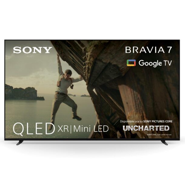 Il design del BRAVIA 7 è altrettanto notevole. Il concept One Slate con Seamless Edge si integra perfettamente in qualsiasi ambiente, mentre il supporto a 4 vie offre massima flessibilità di posizionamento. Il nuovo Telecomando Eco, ricaricabile e retroilluminato, aggiunge un tocco di modernità e praticità, riducendo al contempo l'impatto ambientale.