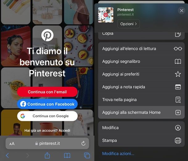 Una volta raggiunto il portale di tuo interesse, ti basta fare tap sull'icona della condivisione collocata in basso, selezionando poi la voce Aggiungi alla schermata Home.
